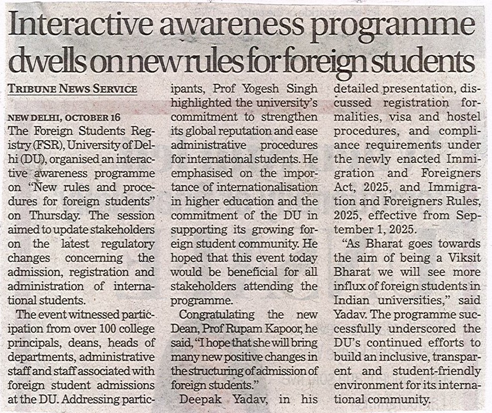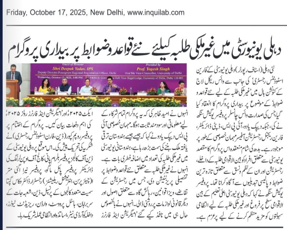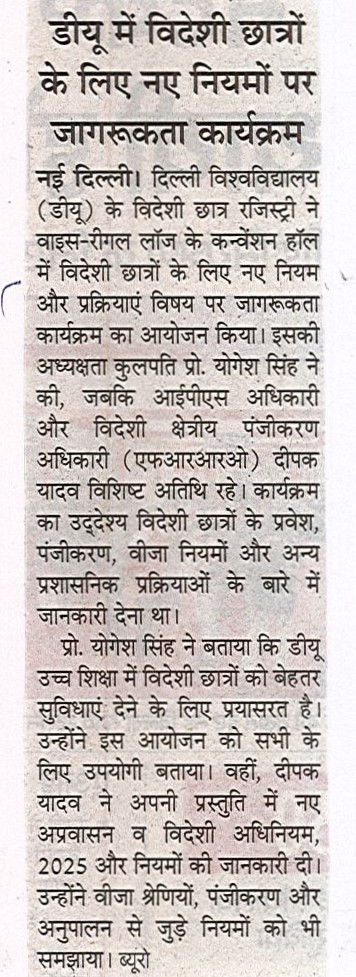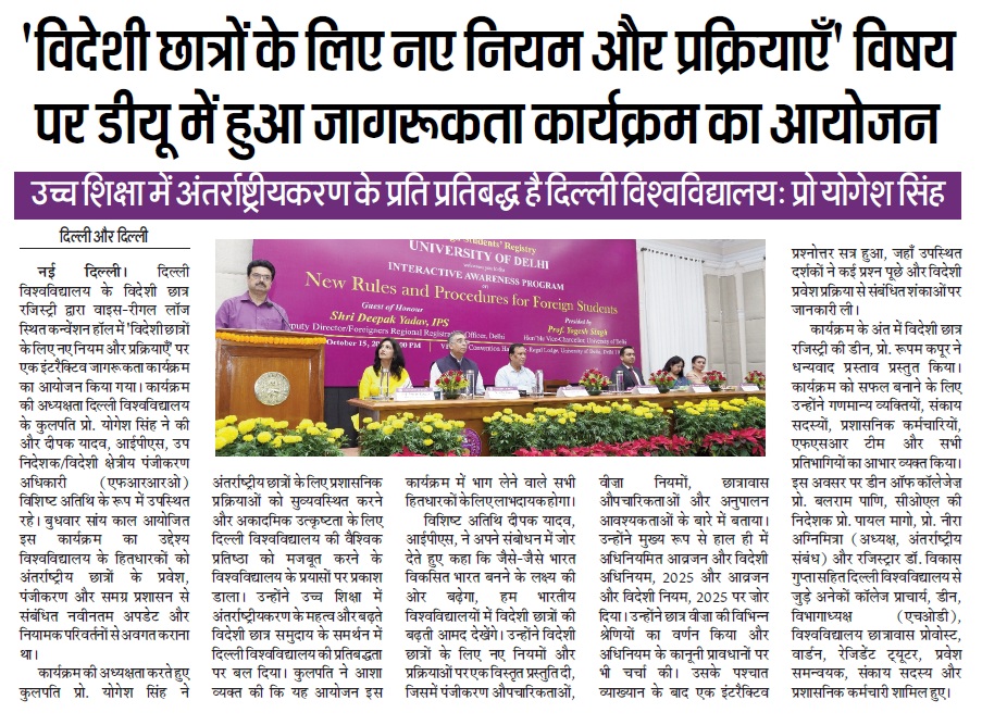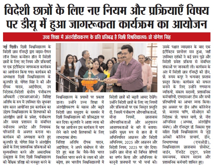 विदेशी छात्रों के लिए नए नियम और प्रक्रियाएँ' विषय पर डीयू में हुआ जागरूकता कार्यक्रम का आयोजन