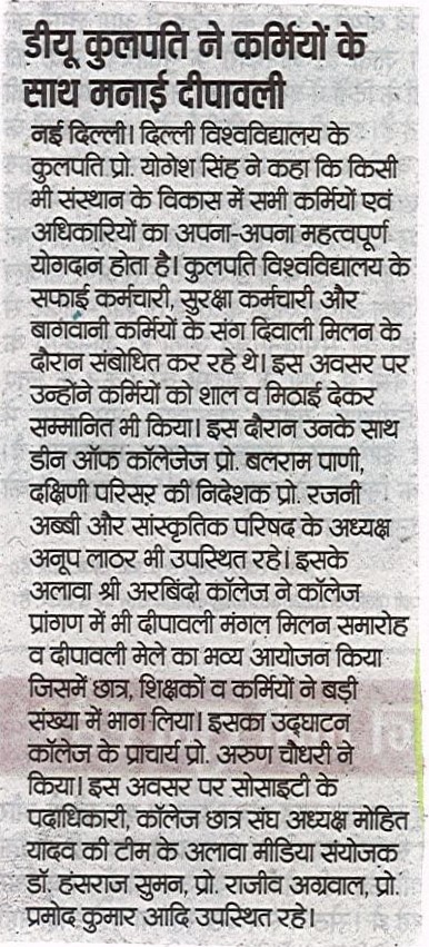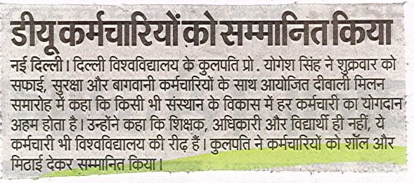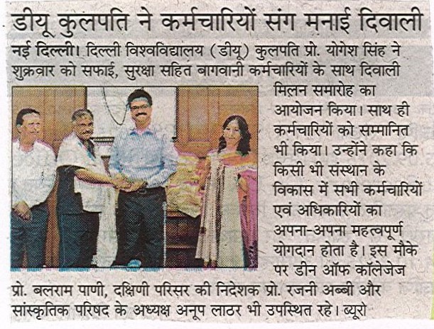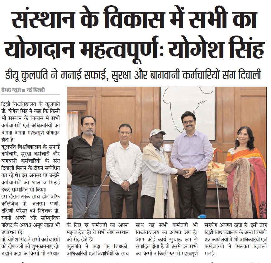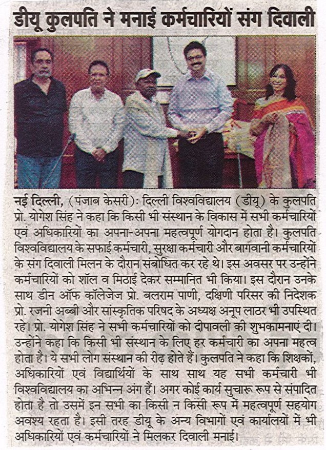 डीयू कुलपति ने कर्मचारियों संग मनाई दिवाली