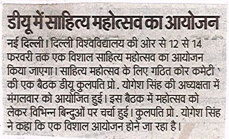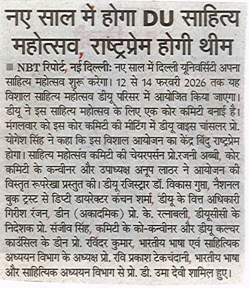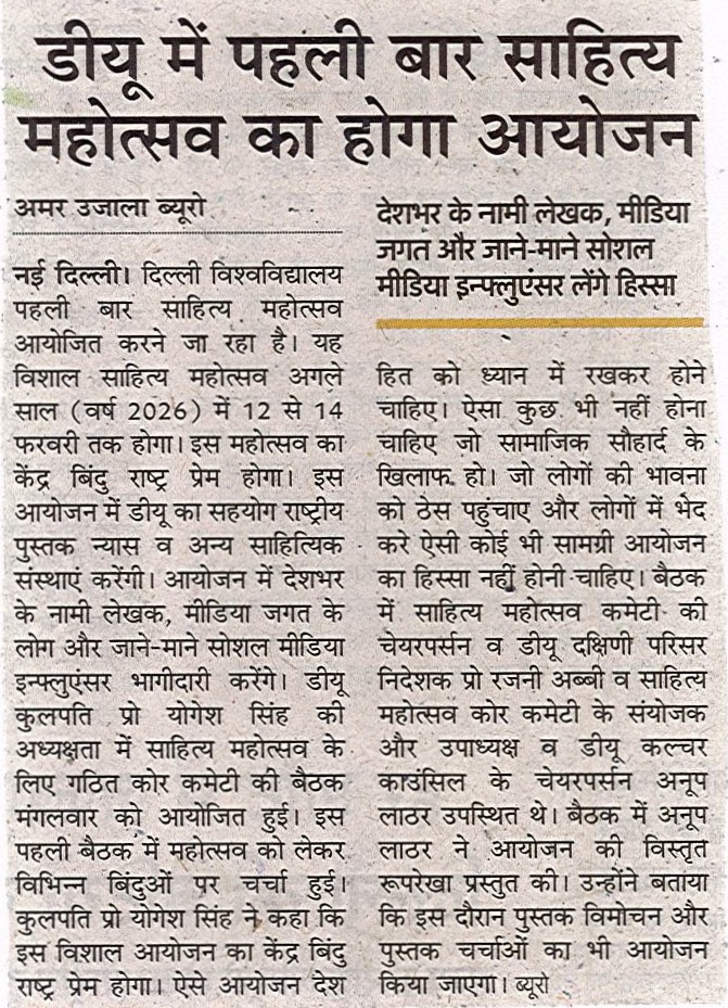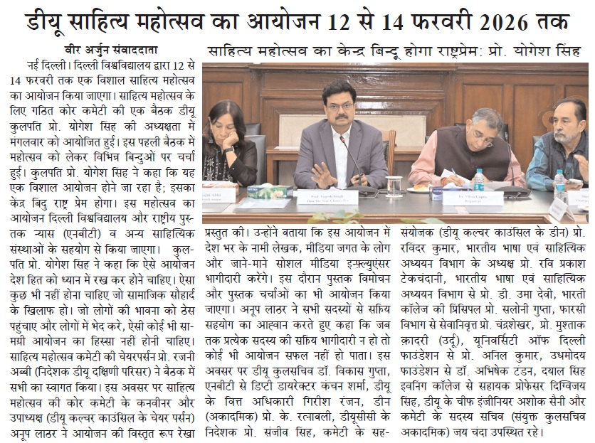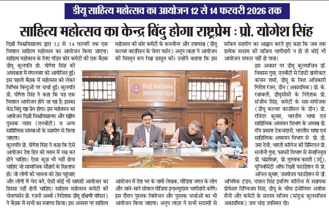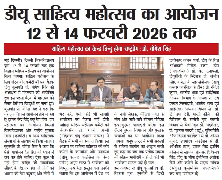 डीयू साहित्य महोत्सव का आयोजन 12 से 14 फरवरी 2026 तक