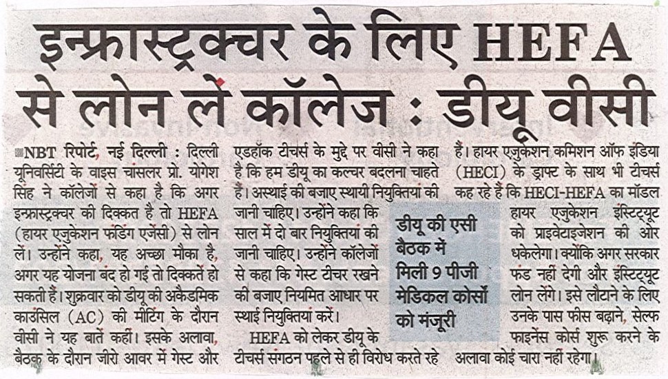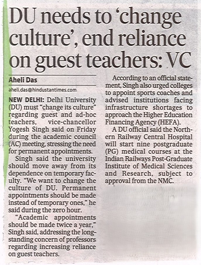 Central Placement Cell under the aegis of Dean Students' Welfare Office, University of Delhi facilitates Times of India Group for Placement Opportunity