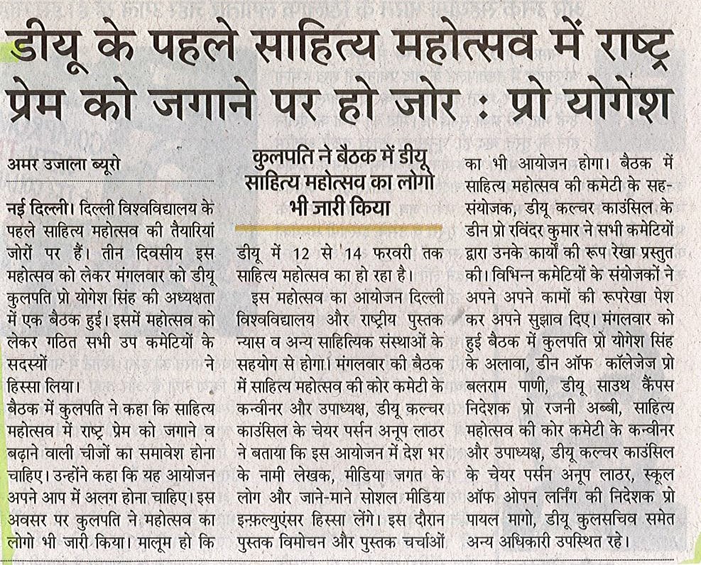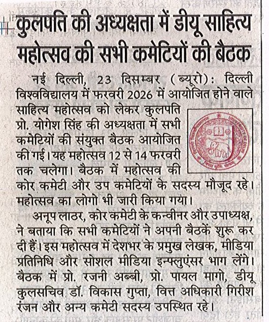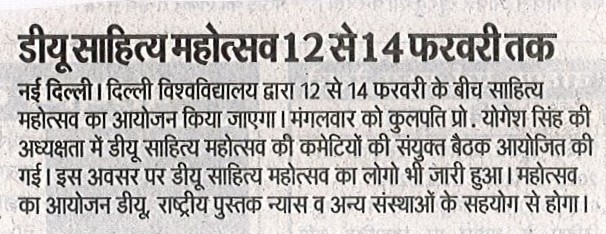 डीयू साहित्य महोत्सव 12 से 14 फरवरी तक