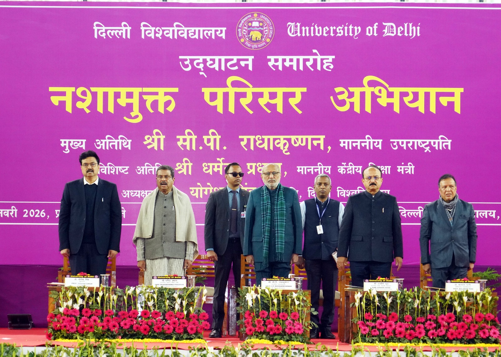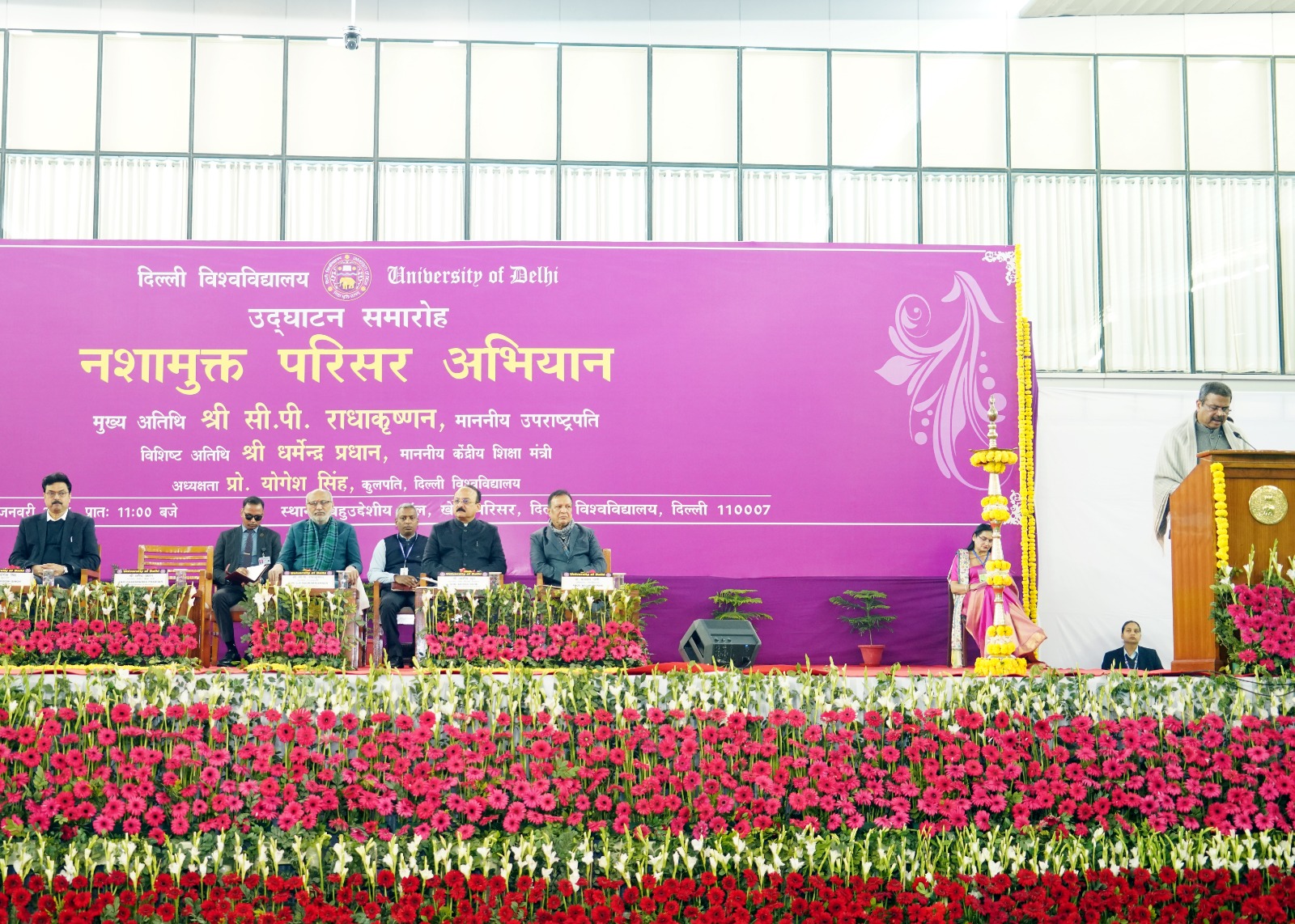 दिल्ली विश्वविद्यालय द्वारा ड्रग-फ्री कैंपस अभियान “नशामुक्त परिसर अभियान” का शुभारंभ मंगलवार, 13 जनवरी को किया गया। इस अवसर पर उप राष्ट्रपति एवं दिल्ली विश्वविद्यालय के कुलाधिपति श्री सी.पी. राधाकृष्णन बतौर मुख्य अतिथि और केंद्रीय शिक्षा मंत्री धर्मेंद्र प्रधान विशिष्ट अतिथि और दिल्ली के शिक्षा मंत्री आशीष सूद सम्मानीय अतिथि के तौर पर उपस्थित रहे। कार्यक्रम की अध्यक्षता डीयू कुलपति प्रो. योगेश सिंह ने की। कार्यक्रम का आयोजन डीयू के स्पोर्ट्स कॉम्प्लेक्स स्थित मल्टीपर्पस हॉल में किया गया। इस अवसर पर मुख्यातिथि द्वारा बटन दबा कर ड्रग-फ्री कैंपस पोर्टल और मोबाइल एप्प को भी लॉन्च किया गया। कुलपति प्रो. योगेश सिंह द्वारा कार्यक्रम के दौरान सभी उपस्थित लोगों को नशा मुक्ति के प्रति शपथ भी दिलवाई।