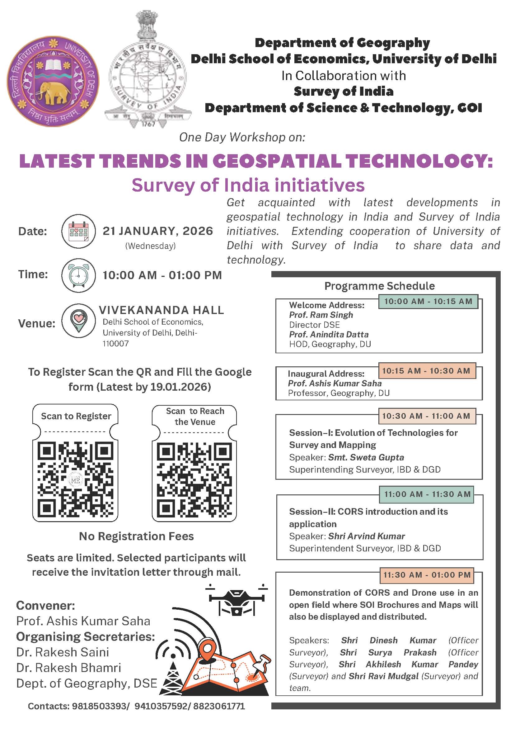 One-Day Workshop on Latest Trends in Geospatial Technology: Survey of India Initiatives - Department of Geography (January 21, 2026)