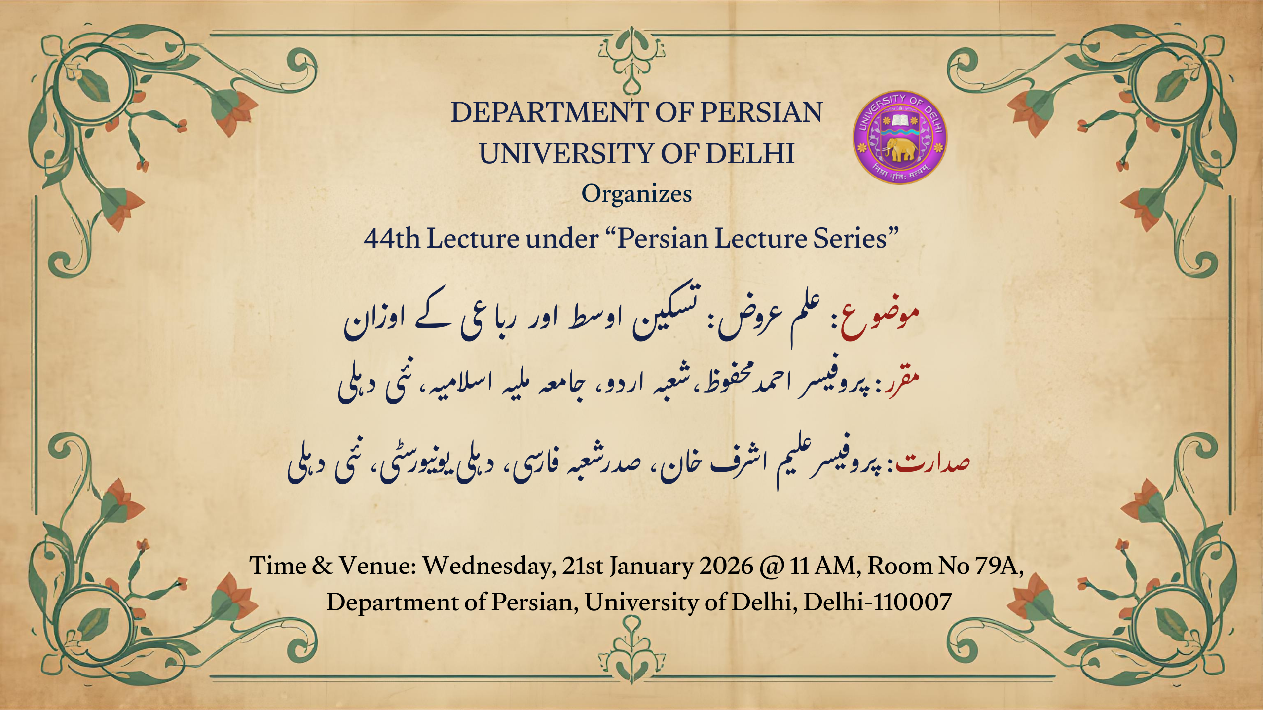 Persian Lecture Series - 44th Lecture - Department of Persian
