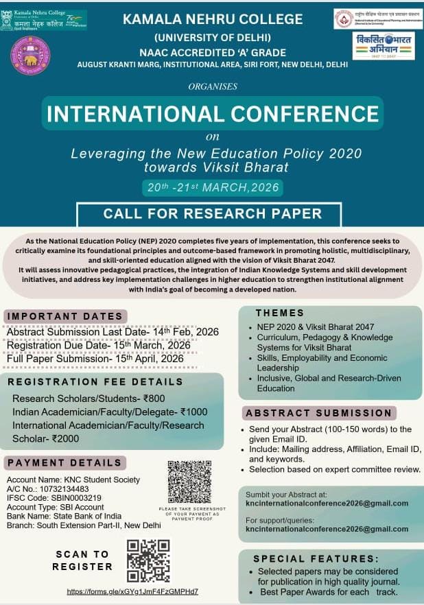 International conference on "Leveraging the New Education Policy 2020 towards Viksit Bharat" organized - Kamala Nehru College