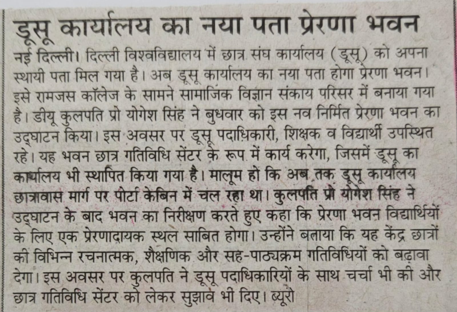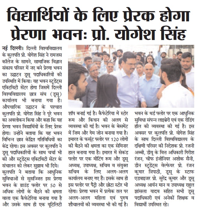 विद्यार्थियों के लिए प्रेरक होगा प्रेरणा भवनः प्रो. योगेश सिंह