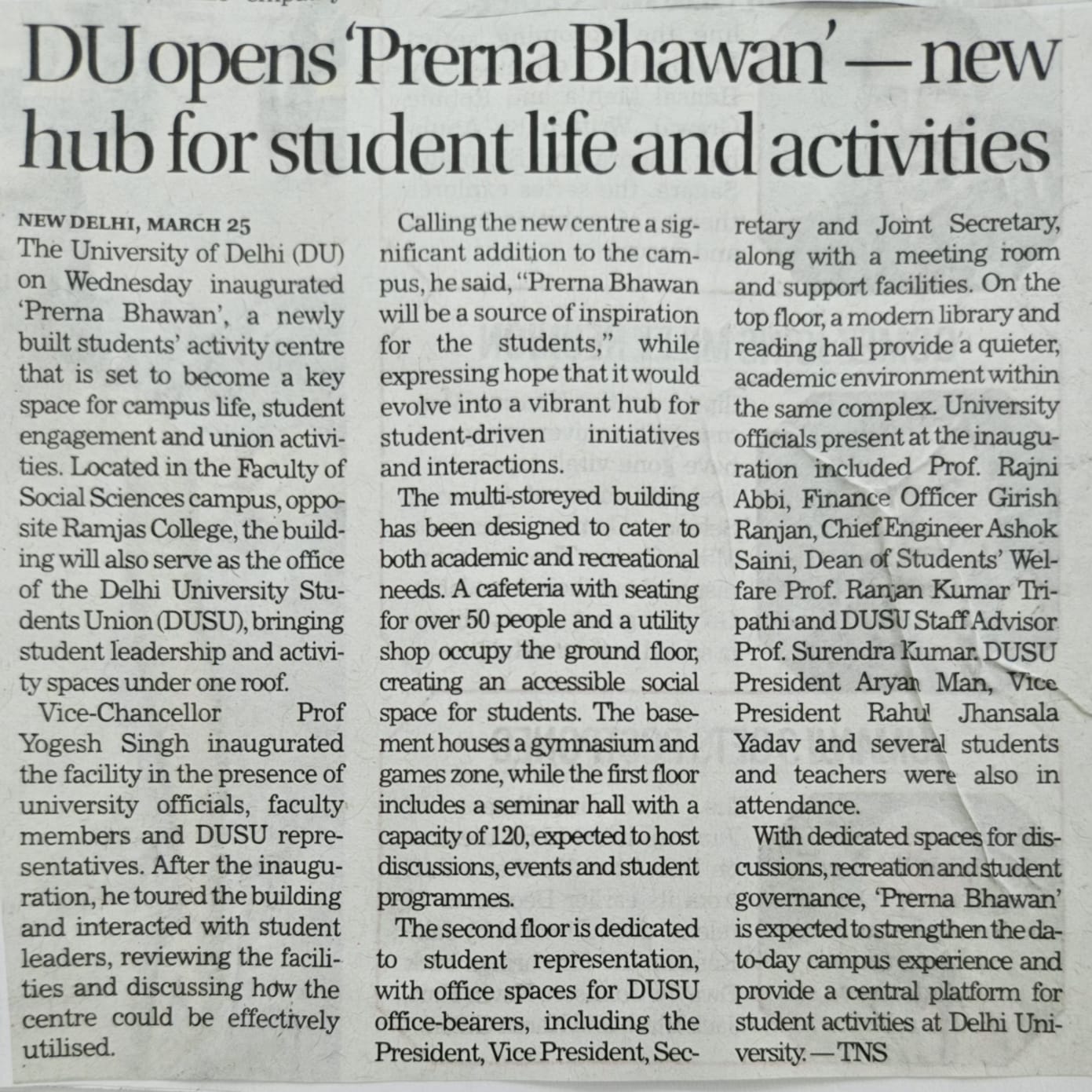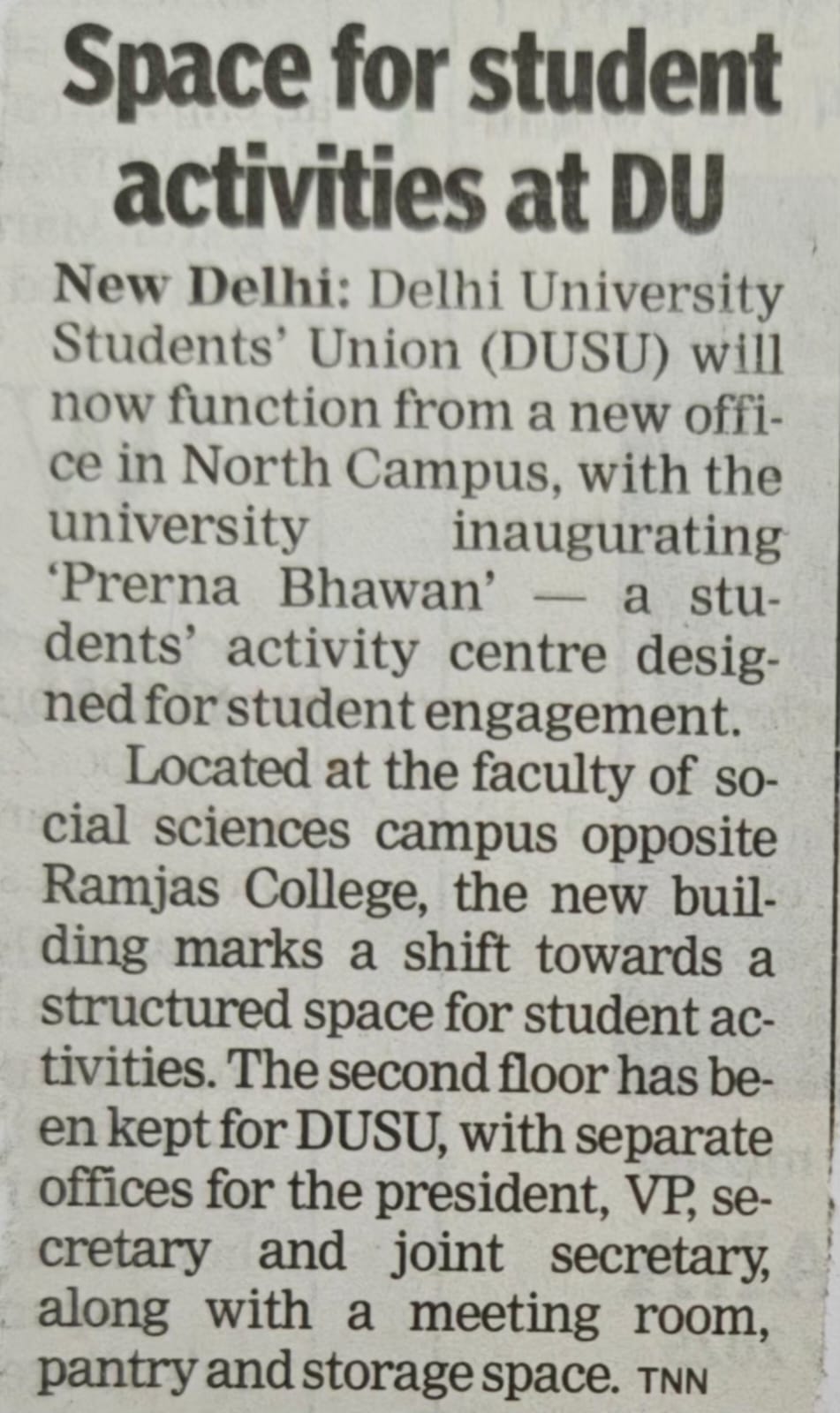 Central Placement Cell under the aegis of Dean Students' Welfare Office, University of Delhi facilitates Times of India Group for Placement Opportunity