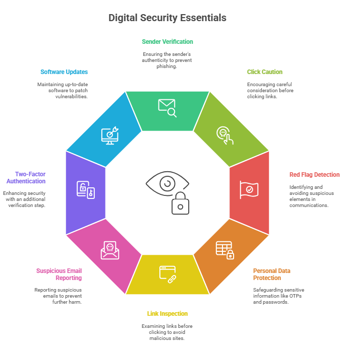 - Never Share Sensitive Data – Banks, universities, and companies never ask for passwords/OTPs by email.