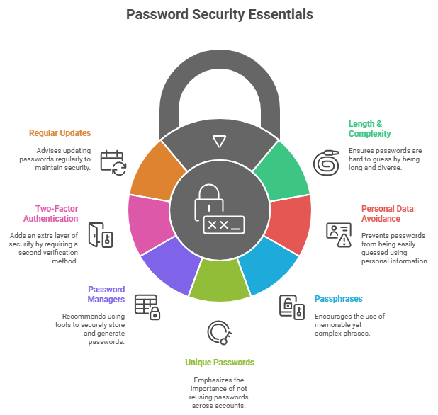 - एक खाता = एक पासवर्ड – कभी पुनः उपयोग न करें।